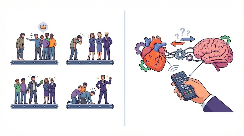 Buraya kadar her şey basit. Ama bir yandan da realistik bilinçaltınız var. Hayal dünyanız, bunları izlerken kendinizi o kişinin yerine koyup ilerde böyle bir durum yaşama ihtimaliniz olduğunu hissettirecek kadar empati kurmanızı sağlar. Ama beyniniz, dünyanın en iyisi olan o kişi olmadığınızı biliyor. O ortamda olsak olsak dünyanın en iyisiyle kendisini aynı ortamda hayal edemeyecek olan, karşısındaki zorbalar olabiliriz. Çünkü hiçbirimiz böyle bir durumda kalmadık ve kalsak nasıl bir tepki vereceğimizi bilmiyoruz.